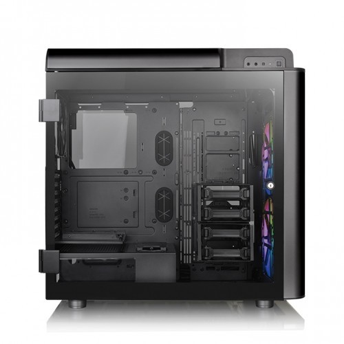 Thermaltake Level 20 GT ARGB Tempered Glass Full Tower Casing is a Tt LCS Certified E-ATX full tower chassis with four 5mm thick tempered glass windows and two preinstalled 200mm 5V ARGB LED front fans and one 140mm rear fan. The Level 20 GT ARGB is the premium full tower synchronized with the motherboard in the level 20 range. Level 20 GT ARGB features four tempered glass panels with locking hinged doors, E-ATX motherboard support, patented PCI-E slot design, and a removable power cover. The Level 20 GT ARGB comes preinstalled with two 200mm 5V ARGB LED front fans and one 140mm rear fan. The front fans are addressable to deliver 16.8 million-color RGB illumination and unparalleled ventilation. This model comes ready to sync with RGB-capable motherboards from Asus, Gigabyte, MSI, and AsRock. The Level 20 GT ARGB takes our latest case innovations and wraps them in an ultra-modern style that’s utterly unique in the case market today. Stand out from the crowd with Level 20. This casing is preinstalled with two 200mm 5V ARGB LED front fans featuring hydraulic bearing, 9 addressable LEDs, and 16.8 million-color illumination to guarantee high airflow and custom system designs to show off your PC design skills. The 5V ARGB LED fans can be controlled using a simple interface built into the I/O panel that cycles through 7 different lighting modes and a range of different color options. For the built-in 5V RGB switch board, the Level 20 GT ARGB is able to deliver the addressable RGB lighting customization through the I/O port RGB button or the synchronization with ASUS Aura Sync, GIGABYTE RGB Fusion, MSI Mystic Light Sync, and ASRock Polychrome motherboards. The Level 20 GT ARGB supports up to E-ATX motherboards, CPU coolers up to 200mm in height, VGA lengths up to 310mm and PSU sizes up to 220mm in length. The Level 20 GT ARGB is designed with a removable power cover, which can be used to organize unused cables to make for a tidy-looking system. The Level 20 GT ARGB features tempered glass panels on the front, top, and both sides. The left and right-hinged doors are also equipped with smart lock security systems to secure the inner components of your case. The top-right panel features two USB 3.0 and two USB 2.0 data transfer ports, along with one USB 3.1 Type-C port. The level 20 GT ARGB features modular panels, racks, brackets, and pre-design mounting arrays. No more unreachable screw corners or gaps, installation can be a breeze with our Dismantlable Modular Design. Thermaltake View 51 Tempered Glass ARGB Edition Full Tower Casing offers No warranty.